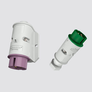 En tomacorrientes hasta 50 V, debido a la ausencia del contacto de conductor de protección, se utilizan una pestaña básica y una pestaña auxiliar adicional para el prolongador y el tomacorriente, y una ranura para la pestaña auxiliar y la pestaña básica en el collarín de protección del conector. La pestaña básica siempre está dispuesta en la posición de la manecilla del reloj de las 6 horas. Según el valor de tensión y frecuencia, la pestaña auxiliar está dispuesta en una posición del reloj según la tablas 208 y 209 de la norma EN IEC 60309-2 (véase «Información adicional» abajo). Las hembras de contacto de tomacorrientes y prolongadores con tensiones de servicio nominales hasta 50 V deben estar ordenadas, como se representa en EN IEC 60309-2 a través de la hoja estándar 2-VIII (véase el gráfico).