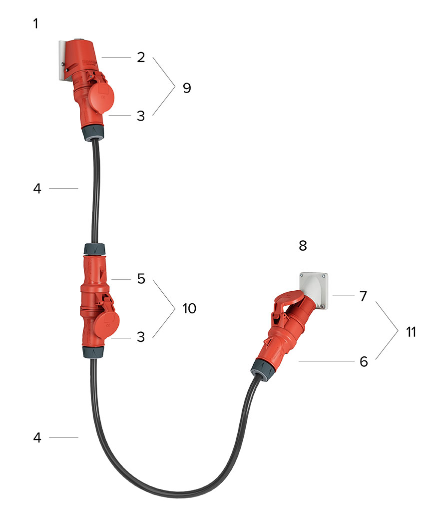 Nuestros tomacorrientes se denominan según la norma EN IEC 60309-1 (el estándar internacional para clavijas y tomacorrientes, acoplamientos de línea y dispositivos enchufables para equipos):