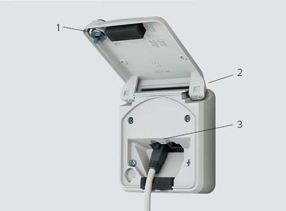El amplio espacio de cableado ofrece lugar suficiente para líneas de hasta 6 mm². La parte inferior puede girarse 180°, lo que permite la entrada del cable desde abajo sin trabajo adicional. El grado de protección IP54 (protección contra cuerpos extraños y salpicaduras de agua) hace que las bases de superficie sean seguras para múltiples áreas de aplicación. Además, el alojamiento incluye membranas adicionales.