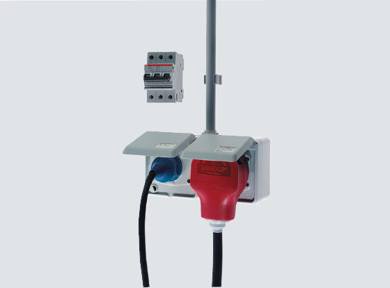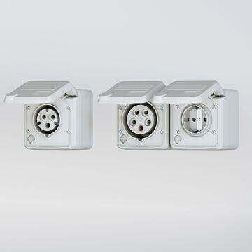 Una combinación de bases muy habitual: CEE de 16 A y SCHUKO®. Si esta combinación se alimenta a través de una única línea de entrada, es obligatorio utilizar un interruptor automático de 3 polos.