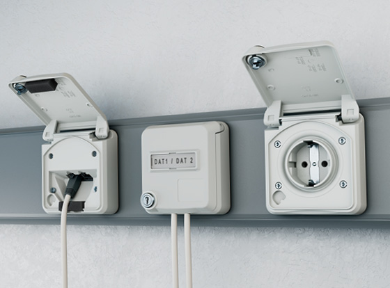 Versátiles y fiables: Nuestras bases de datos Cepex son ideales, por ejemplo, para salas de control, áreas de almacenamiento, laboratorios, aeropuertos o líneas de producción. El funcionamiento se realiza mediante cables de parcheo estándar. Son compatibles con bases Cepex, CEE y SCHUKO®. Ya sea en superficie, empotradas o para la instalación en canal: estas bases encajan siempre.